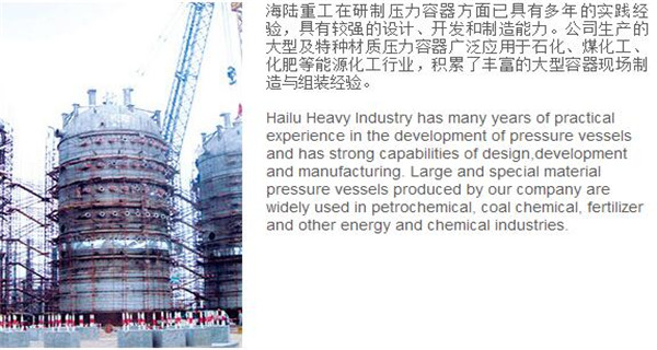 蘇州海陸重工股份有限公司位于江蘇省張家港市開發(fā)區(qū),是國(guó)內(nèi)一流的節(jié)能環(huán)保設(shè)備的專業(yè)設(shè)計(jì)制造企業(yè),目前并已初步形成鍋爐產(chǎn)品、大型壓力容器、核電設(shè)備、低溫產(chǎn)品、環(huán)保工程共同發(fā)展的業(yè)務(wù)格局。公司創(chuàng)建于1956年,注冊(cè)資本51640萬(wàn)元,占地面積近50萬(wàn)平米。公司下設(shè)八個(gè)控股子公司,一個(gè)余熱鍋爐研究所,在瑞士、北京、武漢、南京、上海、杭州、廣州等地設(shè)立分支機(jī)構(gòu),擁有雄厚的研發(fā)實(shí)力。公司秉承“科技領(lǐng)航、業(yè)界先鋒”的發(fā)展理念,注重研究廢熱、余熱利用和環(huán)境保護(hù)相結(jié)合的新技術(shù)研發(fā),自主設(shè)計(jì)能力居同行前列;公司承擔(dān)過國(guó)家863計(jì)劃,江蘇省科技成果轉(zhuǎn)化專項(xiàng)資金,榮獲國(guó)家科技進(jìn)步二等獎(jiǎng),產(chǎn)品擁有核心自主知識(shí)產(chǎn)權(quán)并取得專利50多項(xiàng);公司推行國(guó)際先進(jìn)的管理體系標(biāo)準(zhǔn)和認(rèn)證,擁有 A級(jí)鍋爐制造許可證,A1、A2、A3級(jí)壓力容器設(shè)計(jì)和制造許可證,取得了民用核承壓設(shè)備制造資格許可證、美國(guó)機(jī)械工程師學(xué)會(huì)(ASME)“S”、“U”鋼印,通過了ISO9001質(zhì)量體系認(rèn)證、健康體系認(rèn)證和14000環(huán)境體系認(rèn)證;公司設(shè)備先進(jìn),裝備精良,專業(yè)嚴(yán)謹(jǐn)?shù)闹圃炖砟畲蛟斐銎焚|(zhì)非凡、質(zhì)量一流的“海陸”品牌聲譽(yù)。